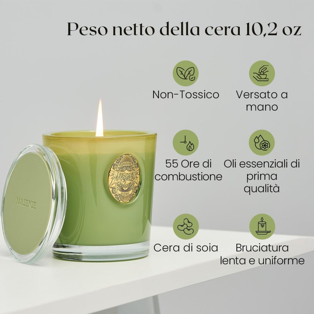 Candela profumata premium da 260g in cera di soia naturale, arricchita con oli essenziali di eucalipto e salvia, per un’esperienza di aromaterapia rilassante e purificante. Contenuta in un barattolo in vetro spesso e riutilizzabile, è perfetta per ambienti eleganti, meditazione o come idea regalo raffinata