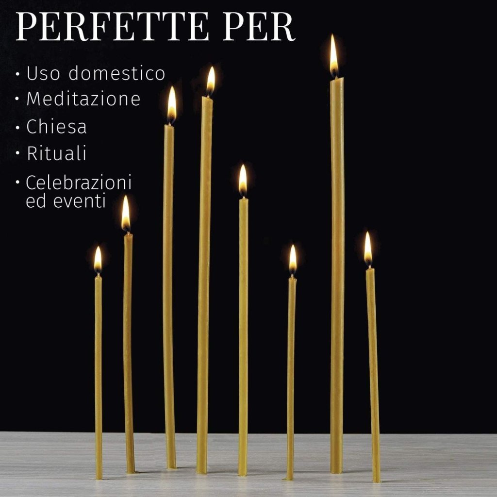 Confezione da 500 candele ortodosse lunghe in pura cera d’api naturale con delicata fragranza al miele, realizzate secondo i più alti standard di qualità per accompagnare momenti di raccoglimento, spiritualità e celebrazioni. Perfette per preghiere, altari domestici, rituali, meditazione, ma anche per eventi decorativi e compleanni. Realizzate con stoppino in cotone, garantiscono una combustione pulita, uniforme e priva di fumo o gocce.